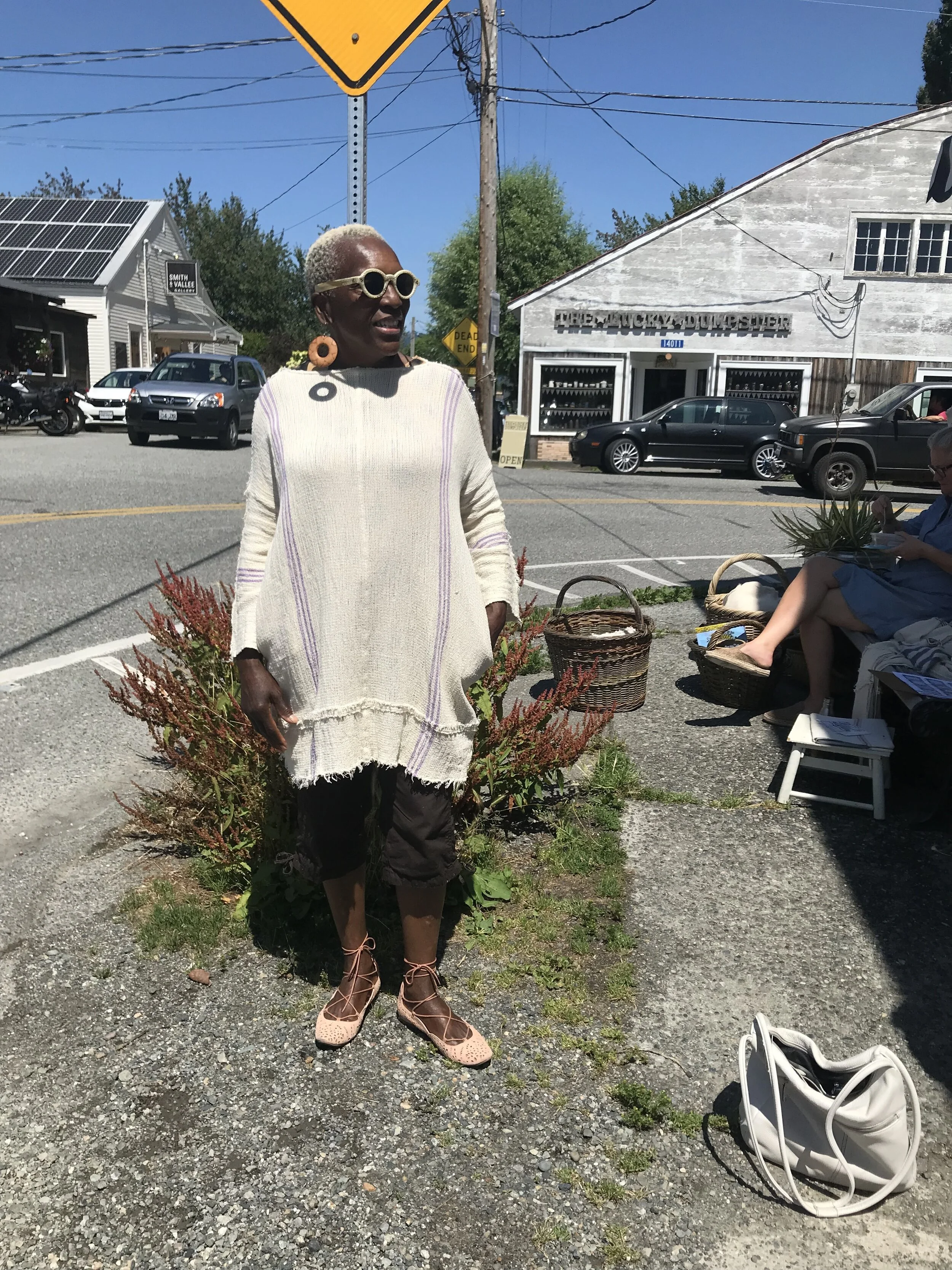 In July 2016 New Trade Route—Sheila Klein ventured into the nearby small village of Edison, baskets packed acting as a roving street peddler. Creating a place for commerce, community and interaction, an impromptu fashion show ensued. The intimacy and pleasure in the direct exchange is a part of the experience. We hope to extend that to you through curated boxes, personal consultations or visiting the studio workshop.